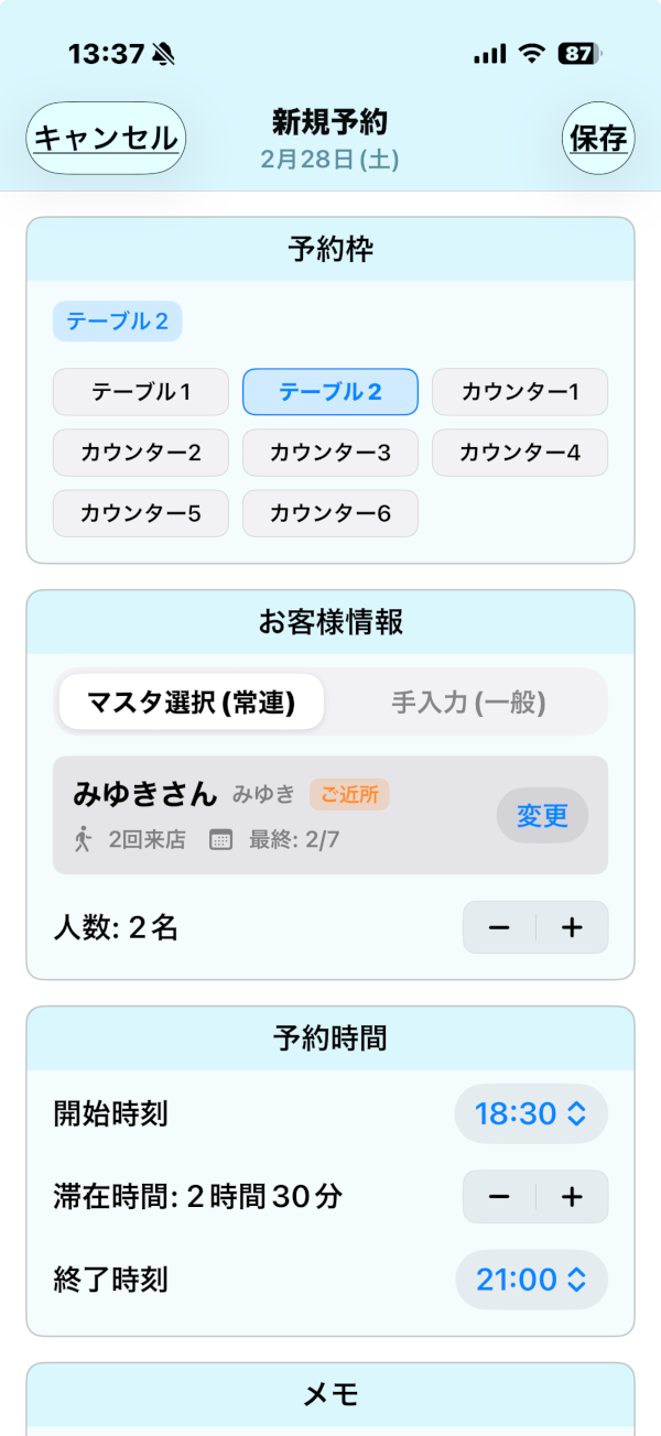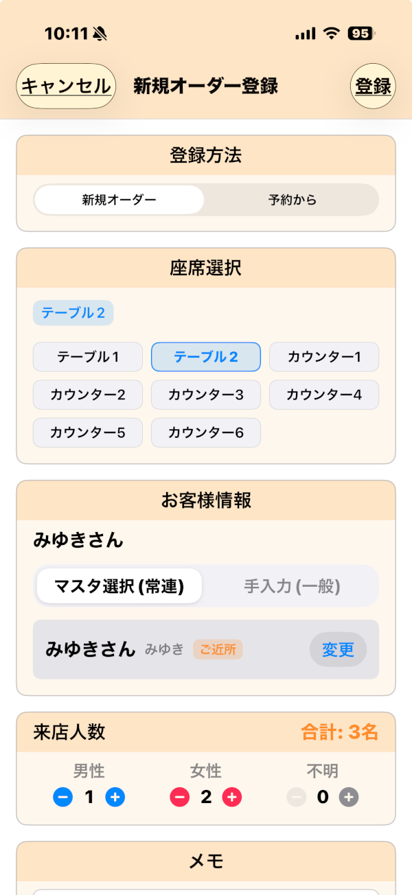 予約からそのままオーダーに移行できるシームレスな操作感です。