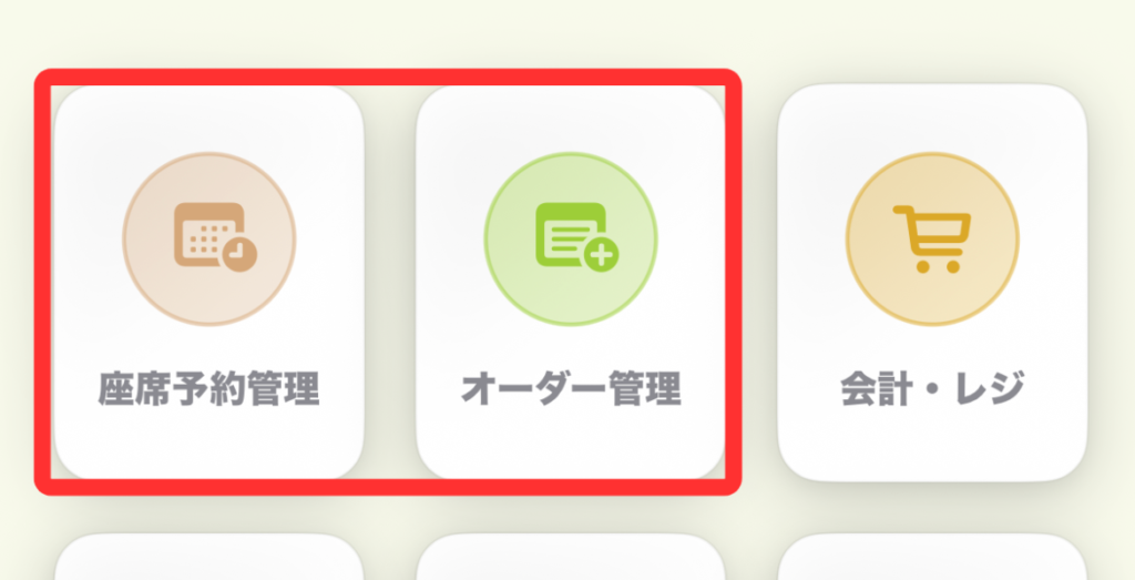 この場合、使用するホーム画面のメニューは「座席予約管理」と「オーダー管理」になります。