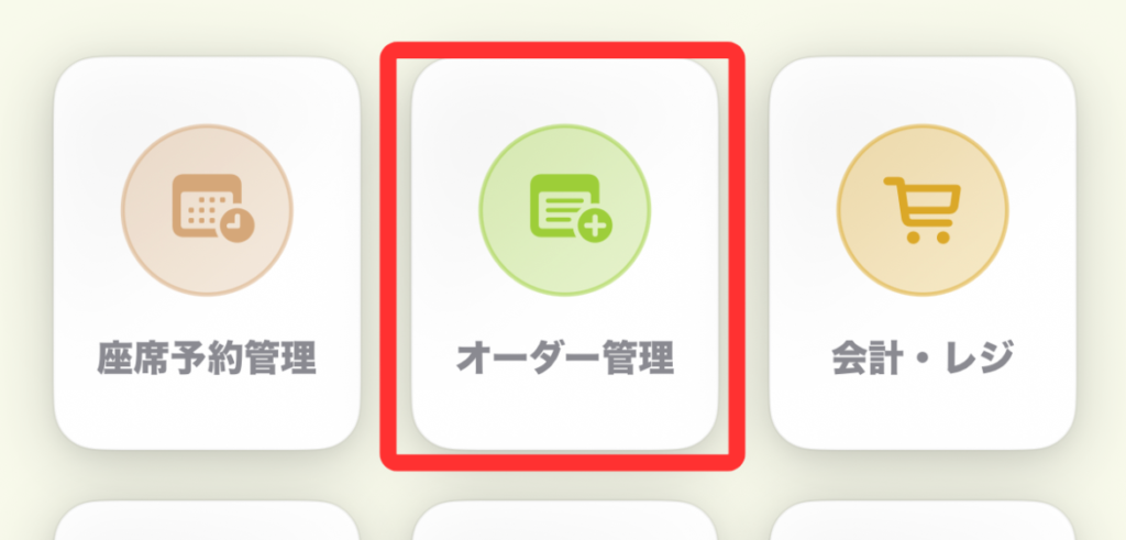 この場合、使用するホーム画面のメニューは「オーダー管理」になります。