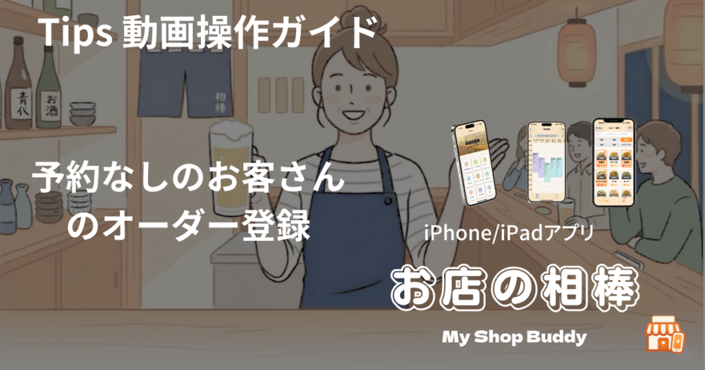 予約なしで直接来店されたお客様のオーダーを、新規で登録するケースです。 https://youtu.be/jwzCKsVwSpk 予約がなくても、その場でパッと登録。人数の性別内訳も入れられるので、客層分析にも役立ちます。 操作概要 STEP右上の「+」ボタンから新規オー... -