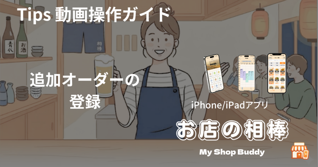 お客様から追加の注文を受ける時の操作方法です。 https://youtu.be/ywTTFh51MM8 忙しいピークタイムでも、数タップで追加注文が完了。注文漏れを防ぎ、効率をアップさせます。 お客様(座席)を選んで、メニュー選択画面でメニューをタップ! トッピング... -